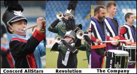 After a short break (good opportunity to wander round the lot and see who you can catch warming up) the DCUK show begins with the cadet class Concord AllStars. This ensemble grow and improve year on year and the 2015 edition take us on a journey through 80s pop, all music � as pointed out in the programme � from before any of Concord�s players were born. The corps begin moving in a shape echoing the turning of a radio dial and the static clears to reveal a great brass sound and some inventive percussion � there�s no tightly defined roles in this corps: snare drummers are as likely to be playing congas or bongos and the bass drum line are getting funky on maracas and timbale. It�s an entertaining show performed with an enthusiasm that�s a joy to watch.