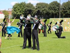 Spirit of 52 (3rd - Open Class) from Rastede, Germany make the trip to perform for us here and what a job they did on the Field with their show �Out of the Dark� An extremely strong and evocative concept began with the scene being set with just the front ensemble visible on the field and a heavy sinister electronic sound effect creating a dark menacing feel and then entering stage right running onto the field in character came the the Guard, Brass and Battery gradually building to a wonderful hit that was tight clean and extremely effective. The show feature individual characters throughout the show to portray the narrative which worked well and kept the audience engaged and entertained. I for one am hoping that this group along with others from the near continent decide to come back to the UK in the future for more of the same.