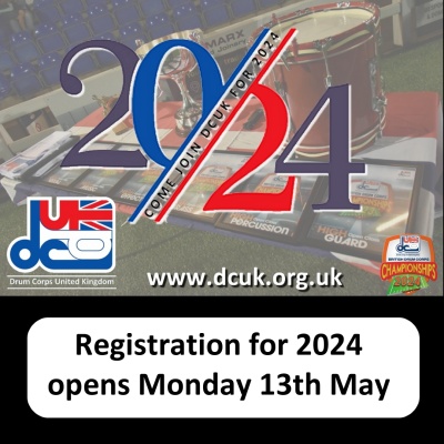 Registration to be part of the DCUK 2024 season opens on Monday 13th May and this is not only for Corps that wish to be part of the normal DCUK contest circuit but also for any units that would like to be part of SoundSport events this summer plus any drum lines up for a DrumLine Battle.