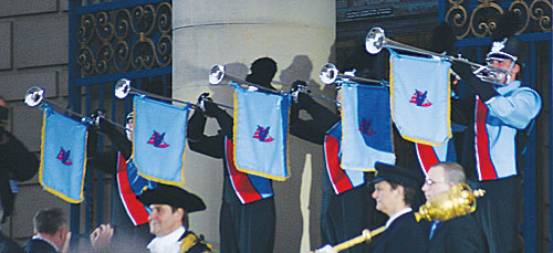 The fanfare team is an excellent way of publicising your corps locally and can put you in contact with many local and national celebrities. It’s a fairly easy project to handle – involving just 6 players and a conductor. Concord are fortunate in having a full set of specially-built fanfare trumpets which, with their banners, look and sound spectacular (you may have seen us play at the opening of Open Class Finals last year in Mansfield) but the same musical effect can be obtained with any brass instruments if carefully arranged. Scouring your local newspaper and civic calendar will find the engagements (you could also register with local theatrical agencies). We would recommend the project to all corps as a means of publicity and a way of generating extra income for little outlay. Please contact us if you’d like more details of how to set up such a team - [email protected]